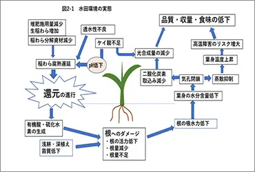 これらの症状はSOSのサインです。還元が進む要因を土壌側とイネ側から解析し、それぞれの対策について説明しています。