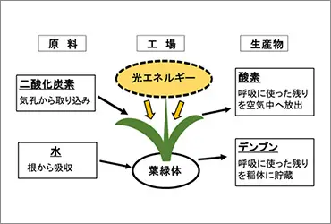 光合成の仕組みを工場で例えてみると、工場(葉緑体)を動かすのは光エネルギーです。日照不足になると光合成の工場の働きが弱くなります。